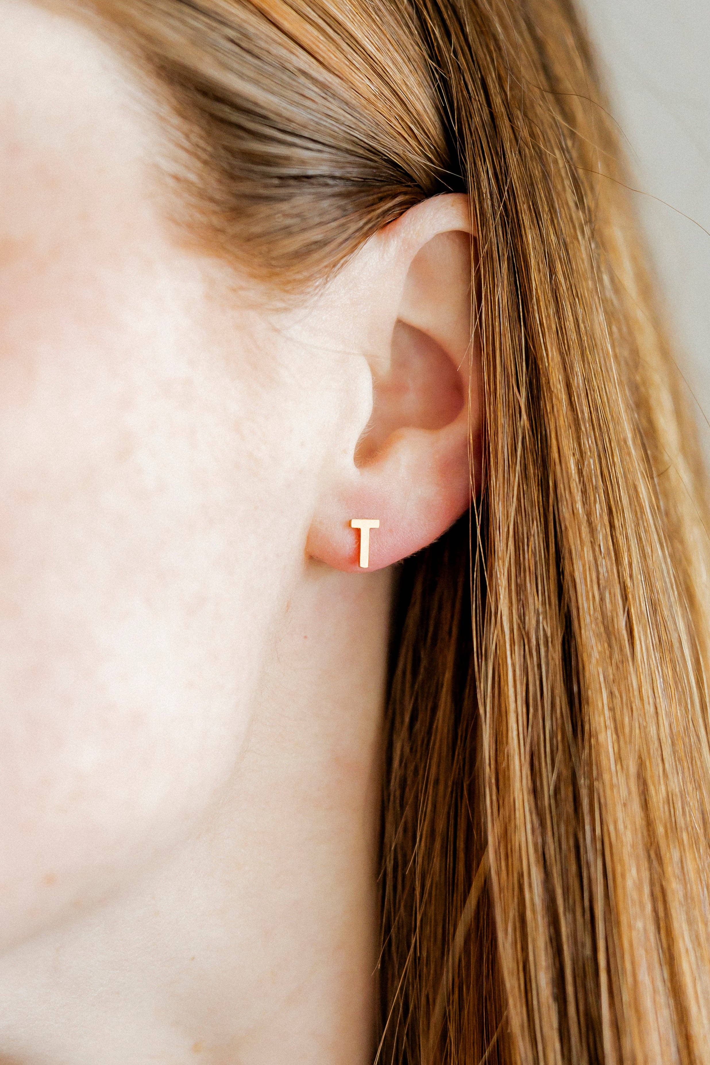 Simple, personal, and effortlessly polished, the Micro Letter T Gold Screw-Back Stud Earrings feature a sleek initial design finished in polished gold. Designed with LINNY CO’s signature flat-back screw-on post, these studs offer secure, poke-free comfort that’s perfect for everyday wear, sleeping, and stacking.