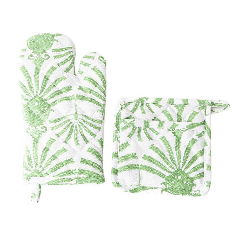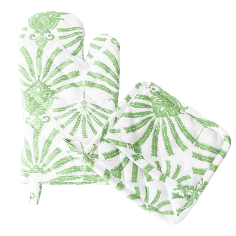 Get ready to feel stylish while cooking with this set – perfect for adding a flair of sophisticated charm to any kitchen. Crafted from 100% cotton, you know you’re getting nothing but the best in quality and comfort. Plus, each mitt and potholder also come complete with a hanging loop for easy storage when not in use!