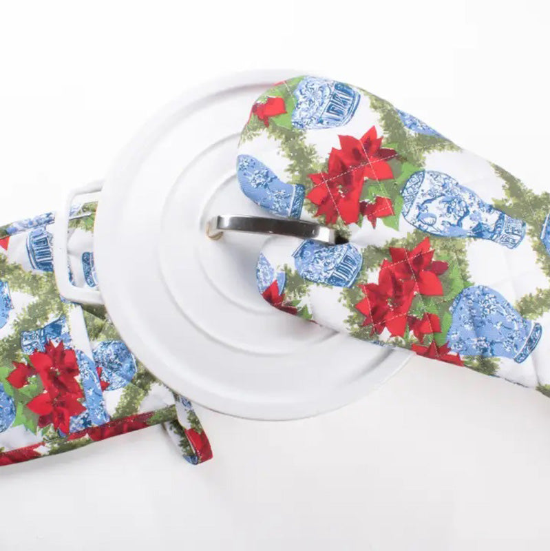 Bring the feeling of festive, yet timeless elegance into your kitchen with the Poinsettias Oven Mitt Set. Get ready to feel stylish while cooking with this set and its signature blue chinoiserie print design – perfect for adding a flair of sophisticated charm to any kitchen.