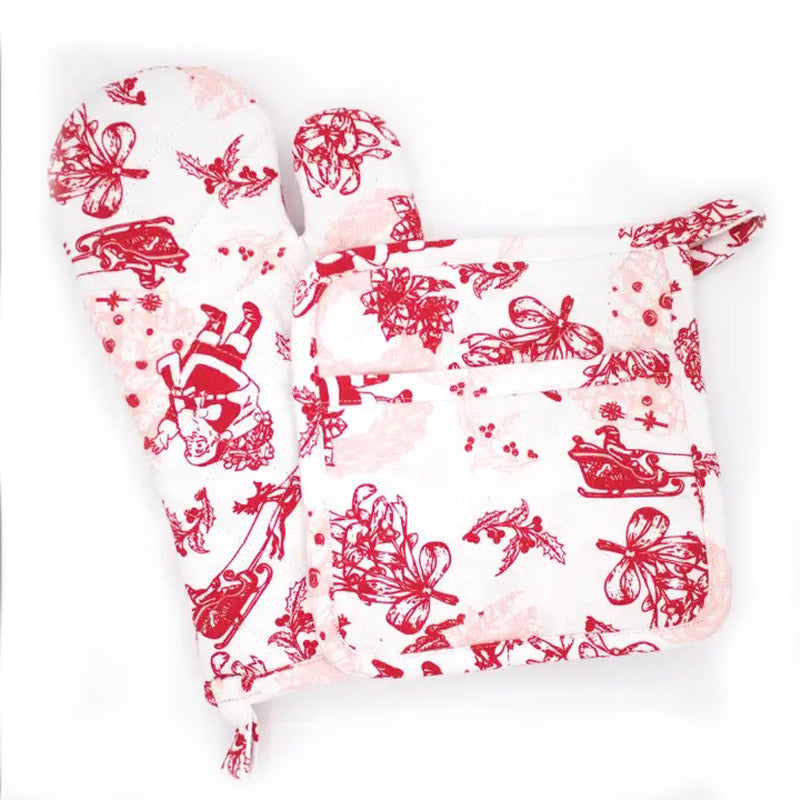 Get ready to feel stylish while cooking with this set – perfect for adding a flair of sophisticated charm to any kitchen. Crafted from 100% cotton, you know you’re getting nothing but the best in quality and comfort. Plus, each mitt and potholder also come complete with a hanging loop for easy storage when not in use!
