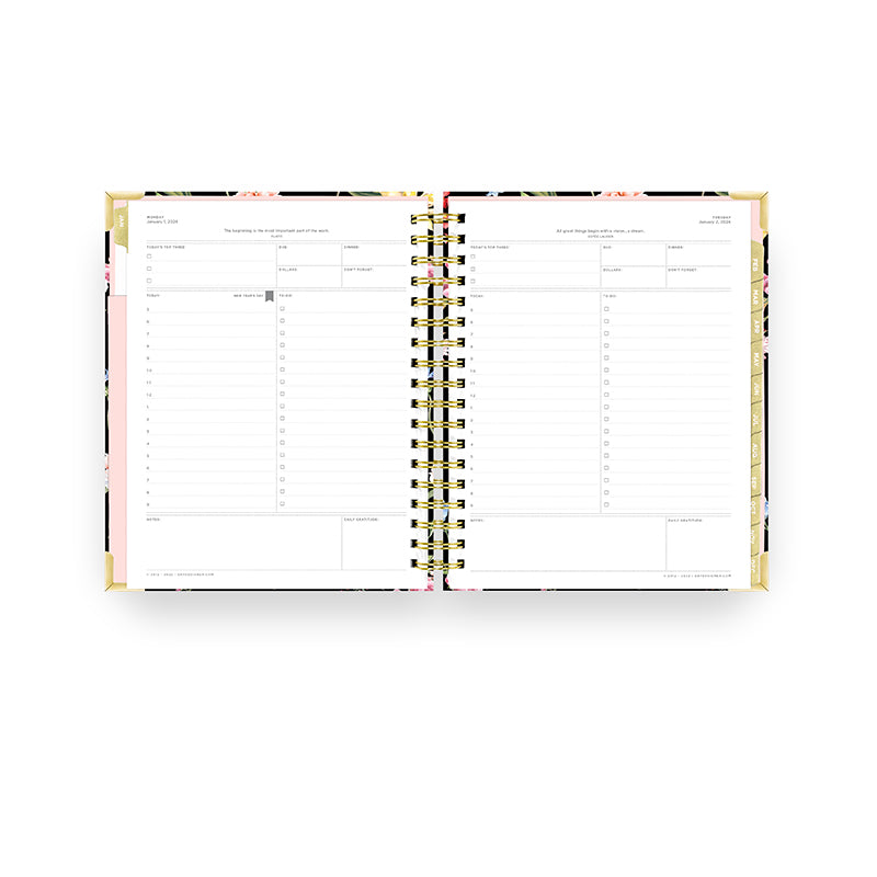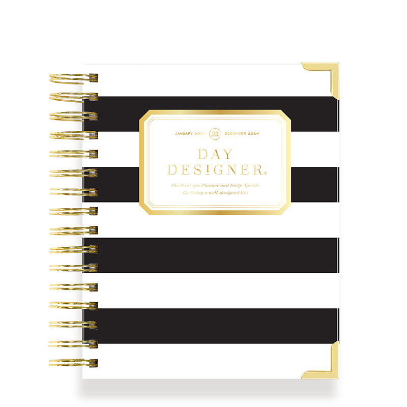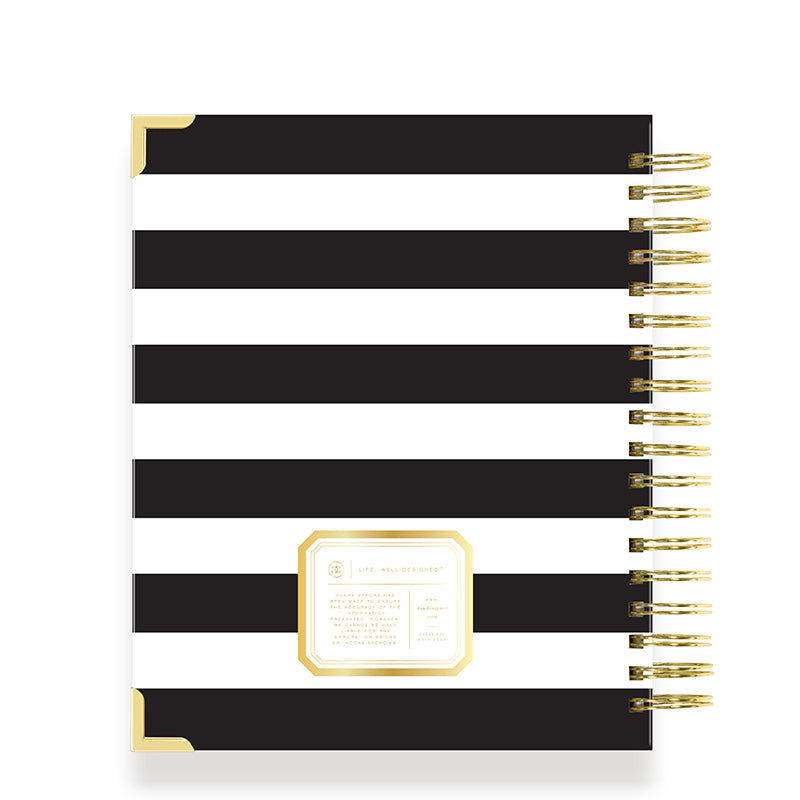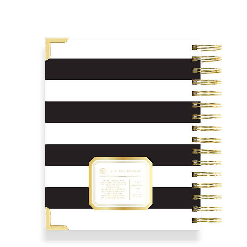 The complete daily planner for goal-setting, productivity and organization. Includes monthly calendar, daily schedule, to-do list and gratitude. Iconic black stripe cover is chic, sophisticated, and fits any setting.