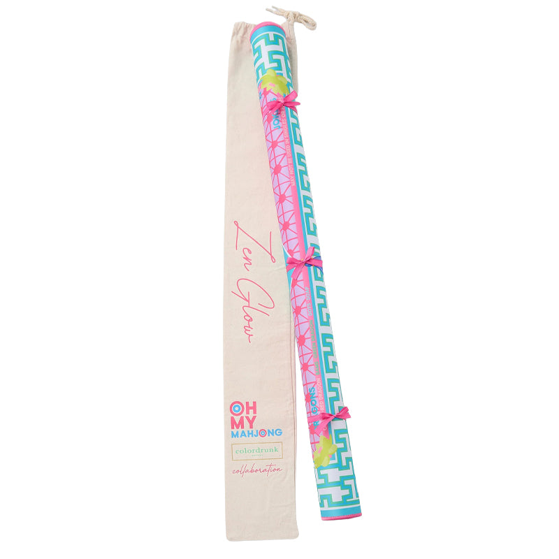 Created in collaboration with Colordrunk Designs. With bold layers of electric hues, including vibrant teals, neon pinks, and striking yellows, this mat exudes a high-energy vibe that’s perfect for those who crave a little extra excitement during their game nights. The design’s fusion of geometric flair and graphic precision makes it the perfect match for a variety of tile sets, adding a pop of color and a touch of artistic sophistication to your gameplay.