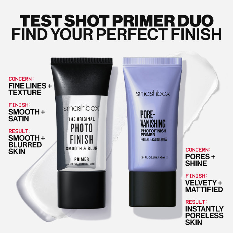 Choose your focus this holiday season with two powerhouse primers. The Original Photo Finish Smooth & Blur Primer is velvety, lightweight, and instantly smooths and blurs fine lines for a soft-focus finish, while the Pore-Vanishing Primer controls oil and vanishes the look of pores in a flash. Both deliver picture-perfect makeup in every holiday photo and beyond. Perfect for gifting or keeping for yourself. $34 value. Major savings, only for the holiday season.