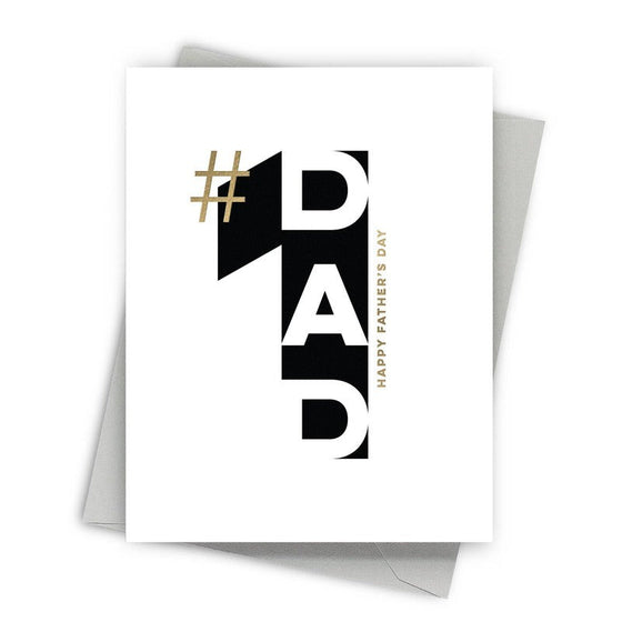 Celebrate an incredible father with the #1 Dad gold foil Father's Day card, a bold and modern way to show appreciation. Featuring a sleek typographic design with striking black and white contrast and shimmering gold foil accents, this stylish card is perfect for Father's Day, birthdays, or any occasion to honor an amazing dad. The contemporary and minimalist aesthetic makes it an ideal Father's Day card, appreciation card, or heartfelt greeting card. Printed on high-quality cardstock and paired with a coordinating envelope, this unique greeting card is perfect for retailers looking for sophisticated, modern designs with a touch of luxury.