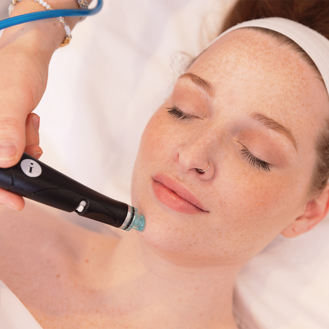 Hydrafacial is a treatment that uses a state-of-the-art Hydradermabrasion machine that is designed to deep cleanse, exfoliate, and extract impurities and then deliver antioxidants, peptides and Hyaluronic Acid. A handheld tool delivers the various cleansers, peels and serums to the skin and also suctions impurities away from the skin. This treatment doesn't cause discomfort and is safe for all skin types.