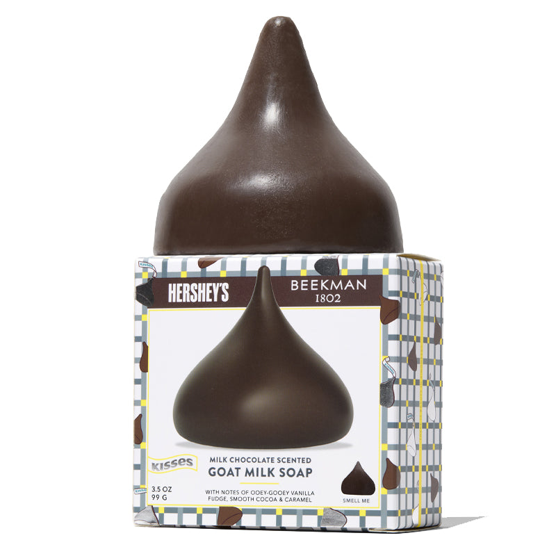 America's favorite goat milk bodycare meets America's favorite chocolate in the sweetest collaboration of all time! Make every bath or shower a moment of pure indulgence with this limited-edition bar soap, crafted in the iconic shape of HERSHEY'S KISSES—the sweetest way to celebrate the season. Perfect for stuffing in stockings or treating yourself, this creamy goat milk formula forms a rich, hydrating lather to deeply cleanse without stripping the skin. Specially made with notes of ooey-gooey vanilla fudge, smooth cocoa and caramel to wrap your skin in rich, velvety sweetness all season long.
