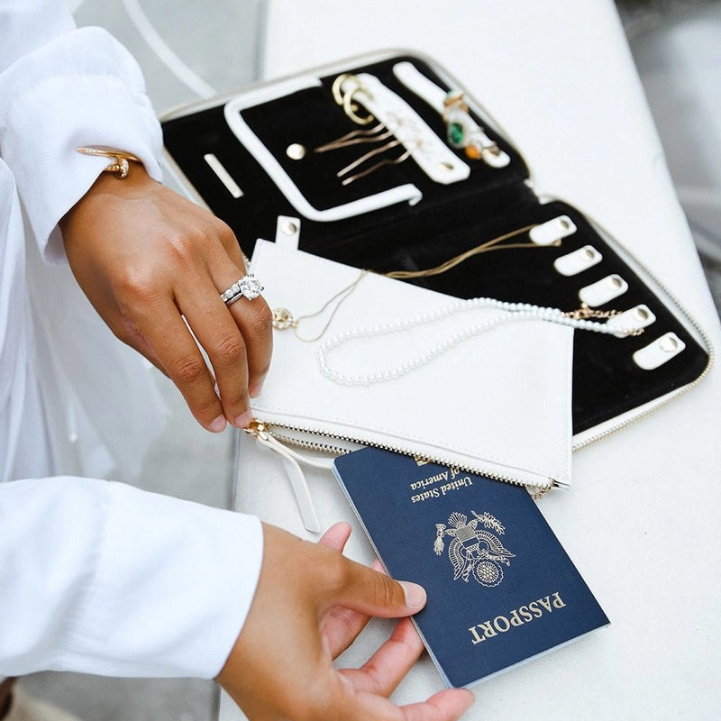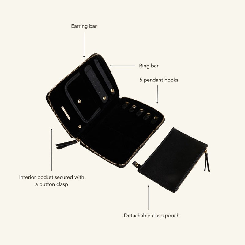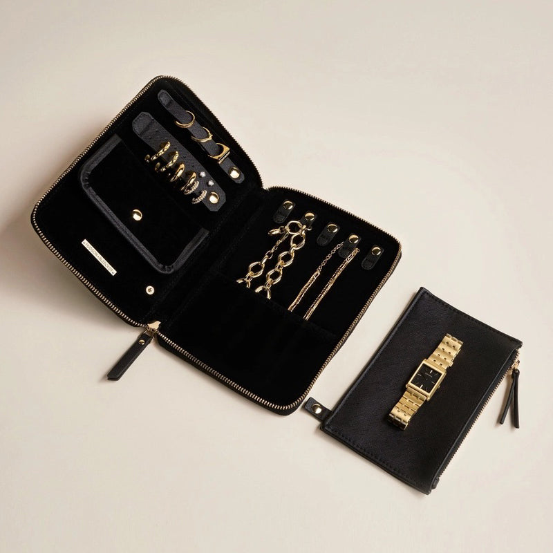 The Bijoux Jewelry Folio is a luxurious and functional travel companion designed to keep your jewelry organized and protected. Its sleek design and durable construction make it the perfect way to store and transport your precious pieces.