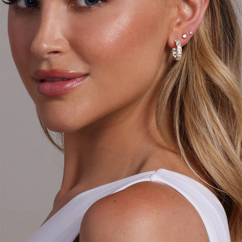 Melinda's boho inspired Isla Hoop Earring! Unique hoops featuring stones that alternate between unique mosaic shapes.