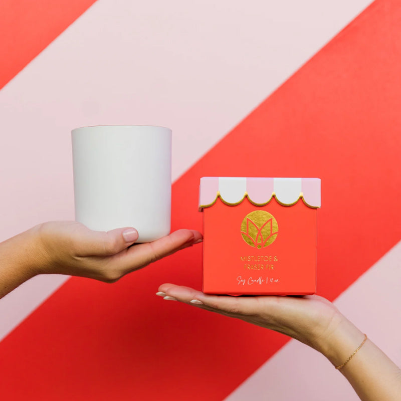 Magical notes of crackling pine, fir, and sandalwood. Matte white vessel with gold-foiled interior nestled in a beautiful gift box, wrapped with a satin bow. Perfect for this gifting season!