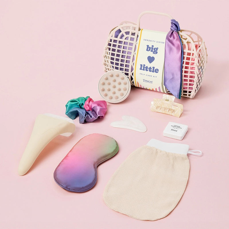 First comes Rush. Then comes the Big/Little reveal! And, with a deluxe assortment of wellness essentials, Pinch Provision's Sorority Sister Self-Care Kit is the perfect gift to give during that exciting post-rush period. The ivory jelly tote features an inner drawstring bag containing the perfect deluxe assortment of 8 spa essentials.