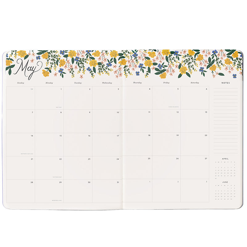 This monthly planner allows you to see the entire month at a glance, in a lightweight format with a thread-stitched binding. Each spread features roomy pages with a different floral each month, plus space to write important dates, engagements, and notes.