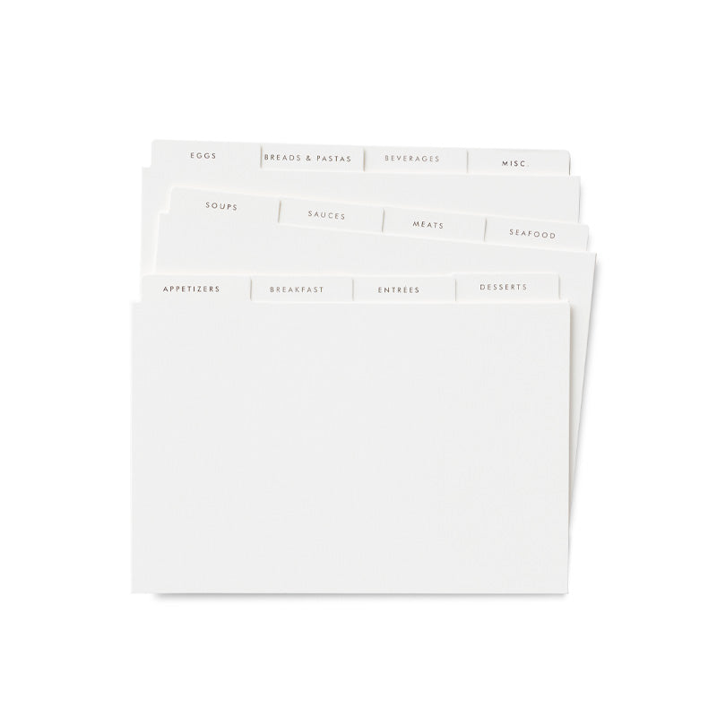 Bring a little festive cheer and charm to your kitchen with this recipe tin. Each box features a gold metallic interior, a gold-framed label on the front, and includes 24 recipe cards and 12 recipe dividers.