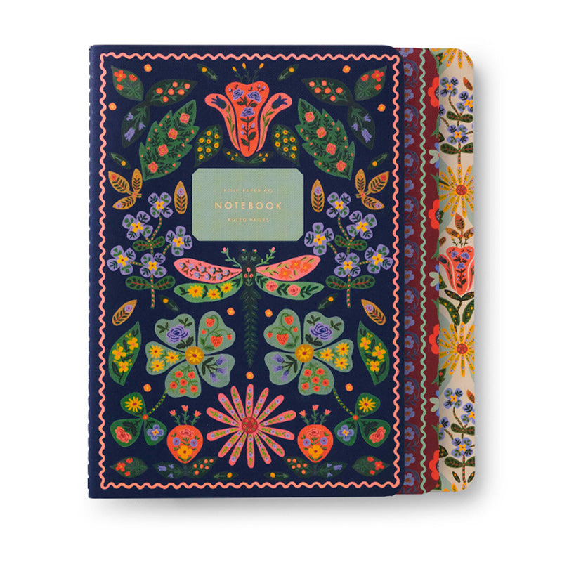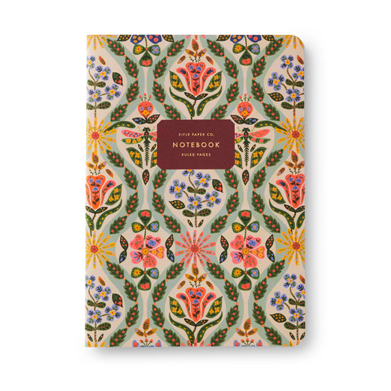 Good things come in threes, and Rifle Paper's Stitched Notebook Set is no exception. Each bundle features three notebooks with full-color covers, stitched binding, gold foil accents, and 64 ruled pages.