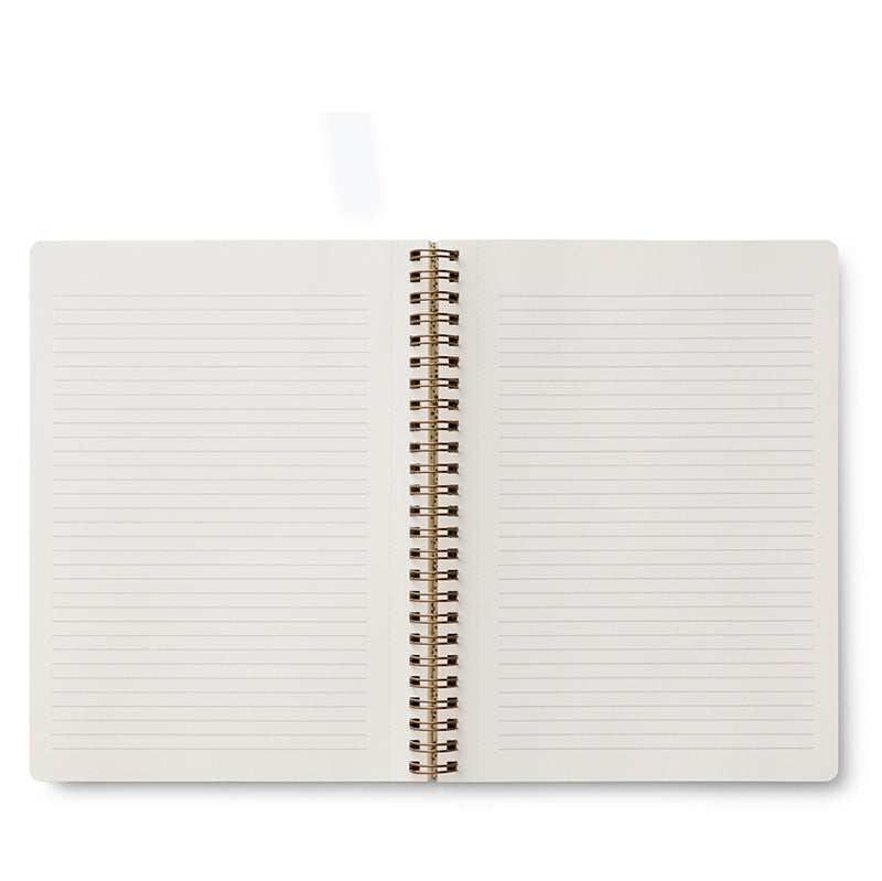 Hit the books with Rifle Paper's new softcover spiral notebooks, featuring full-color covers with gold foil accents, printed on a heavy-weight textured paper. The notebook has 150 ruled pages, a sturdy double-spiral binding, and pockets for extra storage.