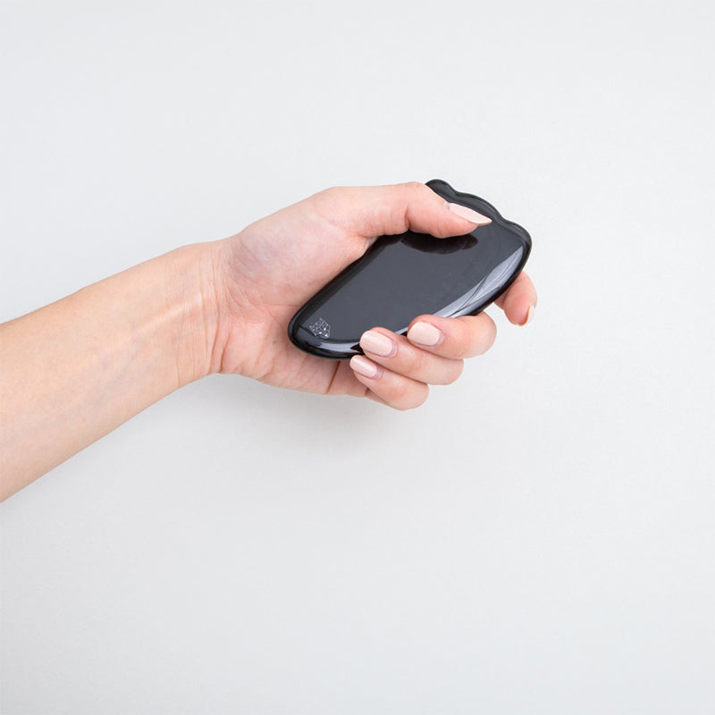 - Press the warmed Gua Sha against the skin to boost the warmth of the Hot Stone Facial Mask