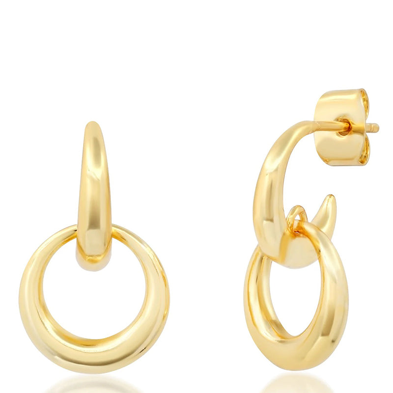 Add a subtle hint of sophistication to any look with this minimalist gold curved huggie and gold ring. Enjoy the comfort of a lightweight and secure fit in your ears with this fashionable accessory.