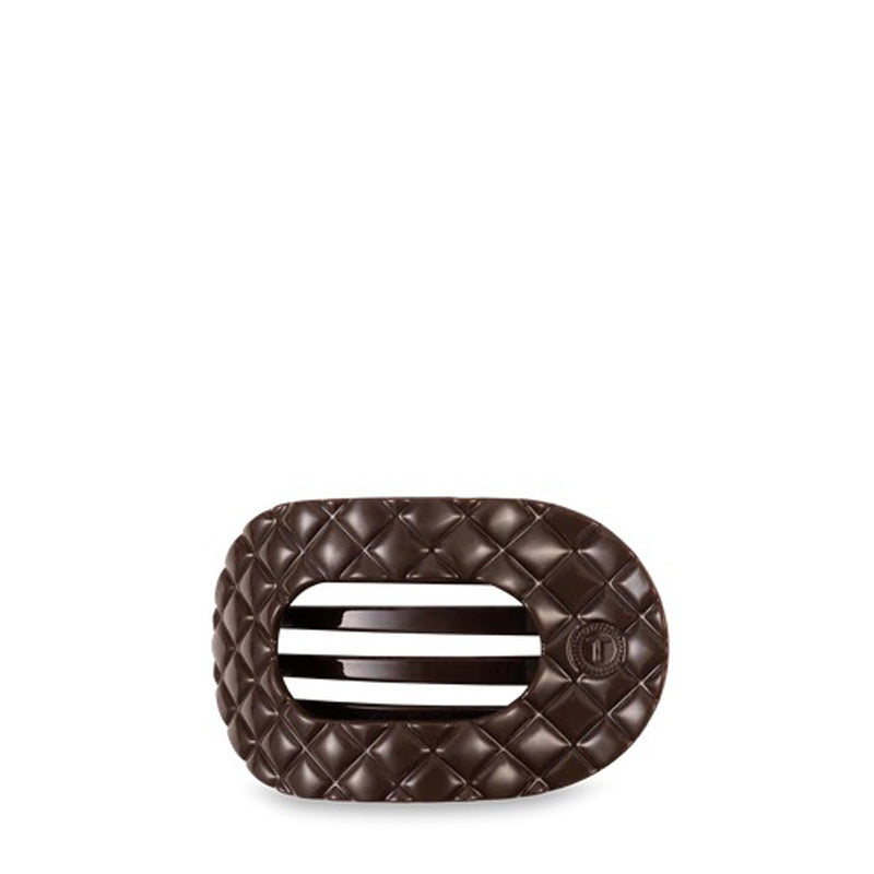 Lay flat and relax with the new TELETIES Truly Taupe Quilted Large Flat Round Hair Clip in Brown. This hair clip is designed to allow you to lay back flat, do yoga, or sit comfortably in a seat with a headrest, and it is made with the same material that is nearly unbreakable.