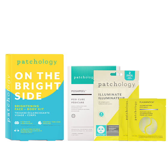 Get your glow on with Patchology's On The Bright Side Brightening Face & Body Kit! These at-home treatments will leave your skin looking radiant from head to toe.