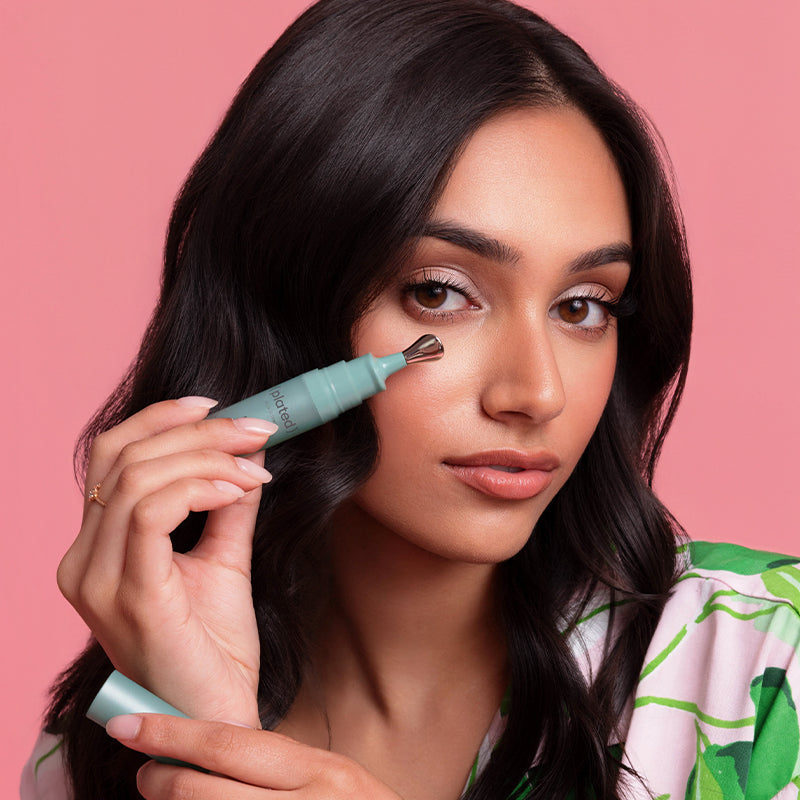 - Dispense a small amount of serum on the applicator and gently dot around the eyes.