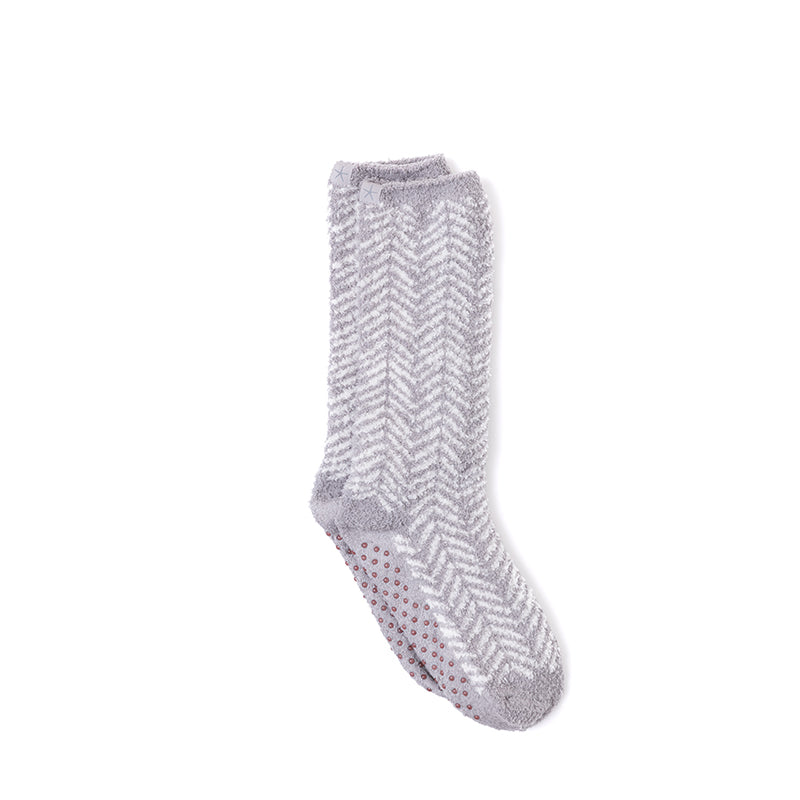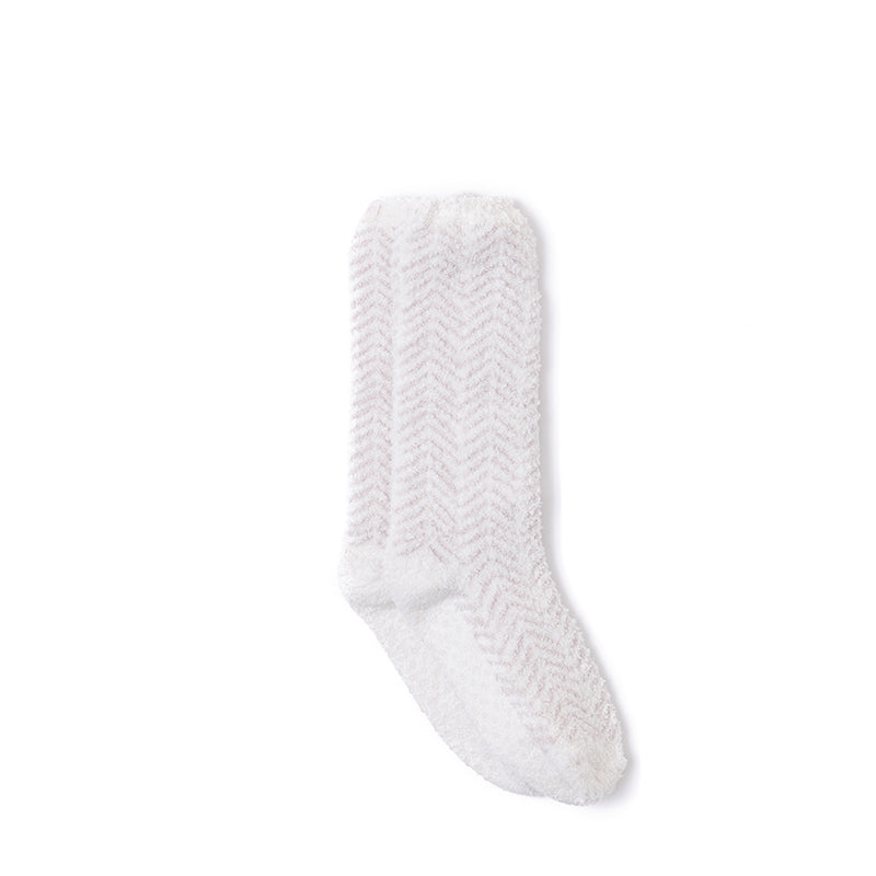Fuzzy socks with a herringbone design and ultra-comfortable soft feel.