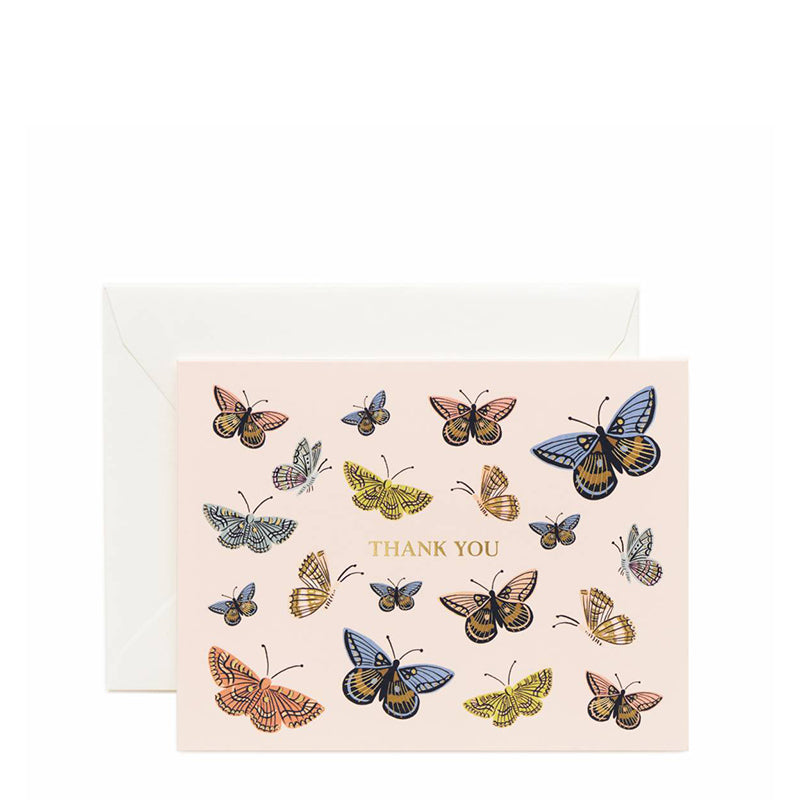 One thing we love about greeting cards: for the price of a small stamp, you can brighten someone else’s day. A fluttering of butterflies helps our Monarch Thank You take flight.