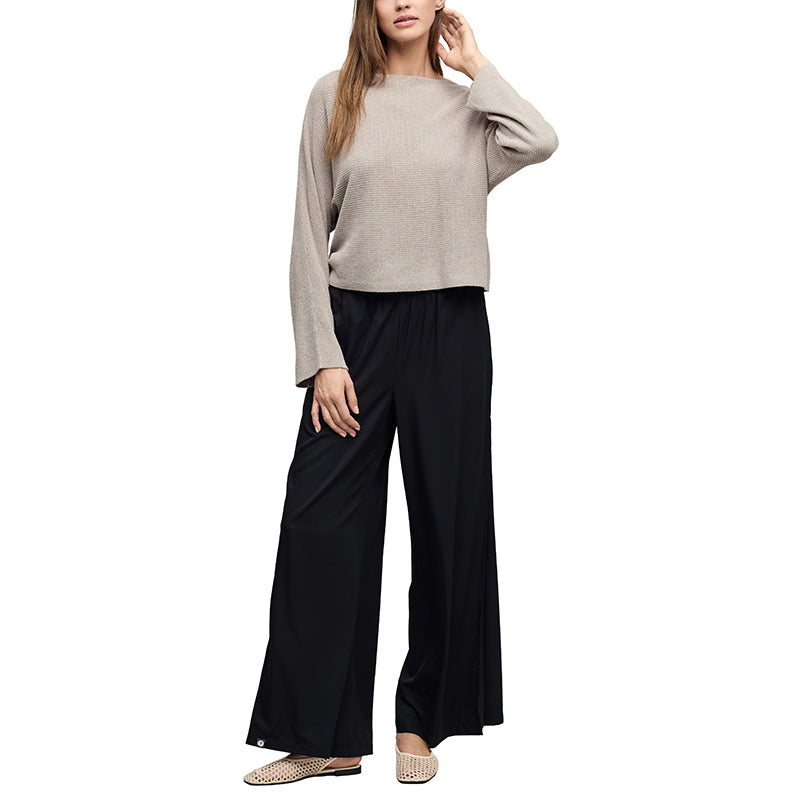 Sleek meets statement in our Matte Sateen Palazzo Pant, designed to bring effortless flow and elevated ease to your everyday wardrobe. Crafted in a soft, fluid matte sateen, this mid-rise, wide-leg pant features side darts at the legs to enhance volume and movement, creating a dramatic silhouette that feels as good as it looks. A relaxed fit with an elasticated waistband and adjustable drawcord offers a customizable, comfortable feel, while side seam pockets add practicality to the polished design. Whether dressed up or down, this pant delivers modern sophistication with laid-back appeal. Imported.