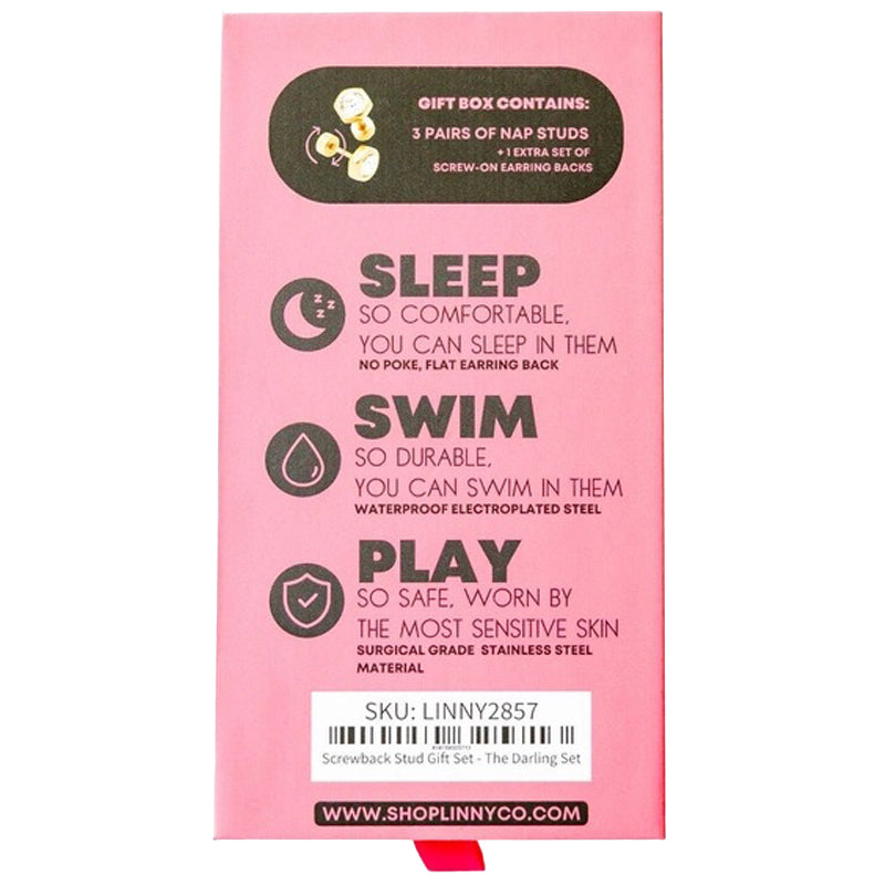 Bring variety and charm to your jewelry box with the Darling Set, a curated trio of screwback studs designed for everyday wear. Each pair is crafted from 100% surgical-grade stainless steel, making them lightweight, hypoallergenic, and safe for sensitive ears. The flat screw-on backs ensure a snug, comfortable fit that’s perfect for all-day wear—even while sleeping or swimming.