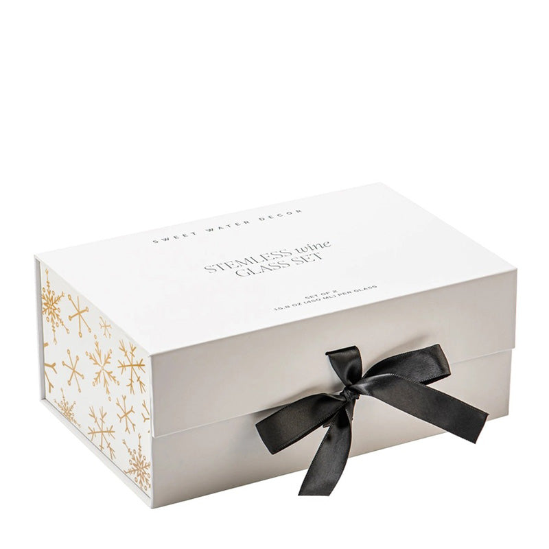 Raise a glass to the season with our Boxed Set of 2 Stemless Wine Glasses, adorned with radiant gold snowflakes. Designed to bring elegance to holiday soirées, winter dinner parties, and intimate fireside toasts, these sparkling glasses make every sip feel like a celebration. Beautifully packaged for effortless gifting, they’re the perfect way to add timeless charm and a touch of festive luxury to any holiday gathering
