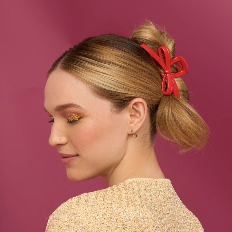 Glossy red bow design inspired by Cindy-Lou Who’s signature style. A strong claw clip keeps hair secure all day—no slipping or tugging. Perfect for quick updos, half-up styles, or adding a playful touch to any look.