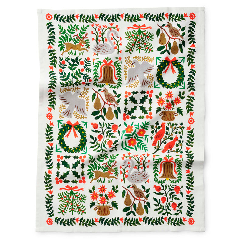 Introduce holiday spirit to the kitchen with this vibrant printed tea towel. We’re big fans of giving them as Christmas presents, but they’re also perfect for lining baskets, drying dishes, or putting on display.
