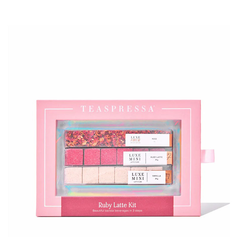 In one minute, make a velvety, bright pink latte with natural beet and Tahitian vanilla sugar cubes. Sprinkle rose petals on top.