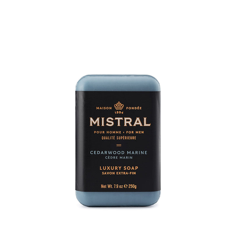 Rich in hydrating grapeseed oil and glycerin, Mistral's authentic triple-milled soap moisturizes the skin and leaves a bold fragrance behind.