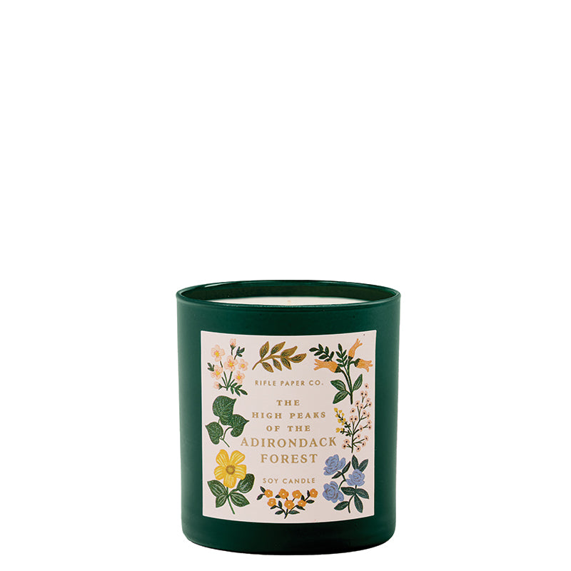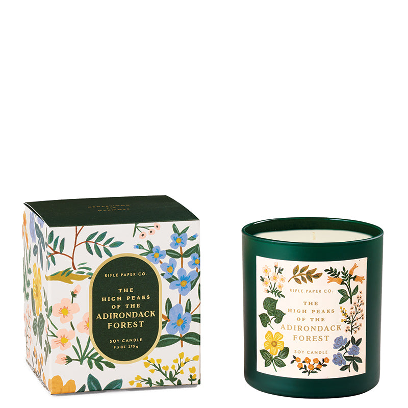 The High Peaks of the Adirondack Forest brings to mind crisp mountain mornings and cozy evenings under the stars, filled with the woodsy scents of cedarwood, oakmoss, clove, and pine. The 9.5oz soy wax candle comes in a painted glass vessel and is packaged in a decorative gift box with gold foil accents.