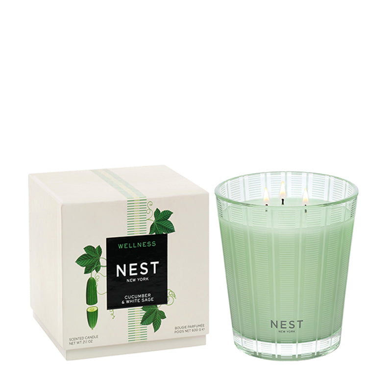 De-stress and refresh with notes of cucumber and white sage wrapped with hints of lavender, a wellness fragrance that helps create a sense of calm and renewal.