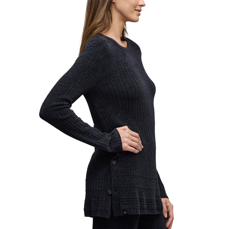 Upgrade your everyday essentials with the CozyChic Ultra Lite® Textured Rib Pullover with Buttons—a refined take on cozy comfort. Crafted from breathable, lightweight CozyChic Ultra Lite® yarn, this pullover features an all-over rib texture with a distinctive variegated pinch seam detail at the hem for added dimension. A semi-relaxed fit and classic crew neckline offer effortless wearability, while side seam plackets with functional buttons add subtle interest and styling versatility. The low-hip length makes it ideal for pairing with leggings, denim, or wide-leg pants.