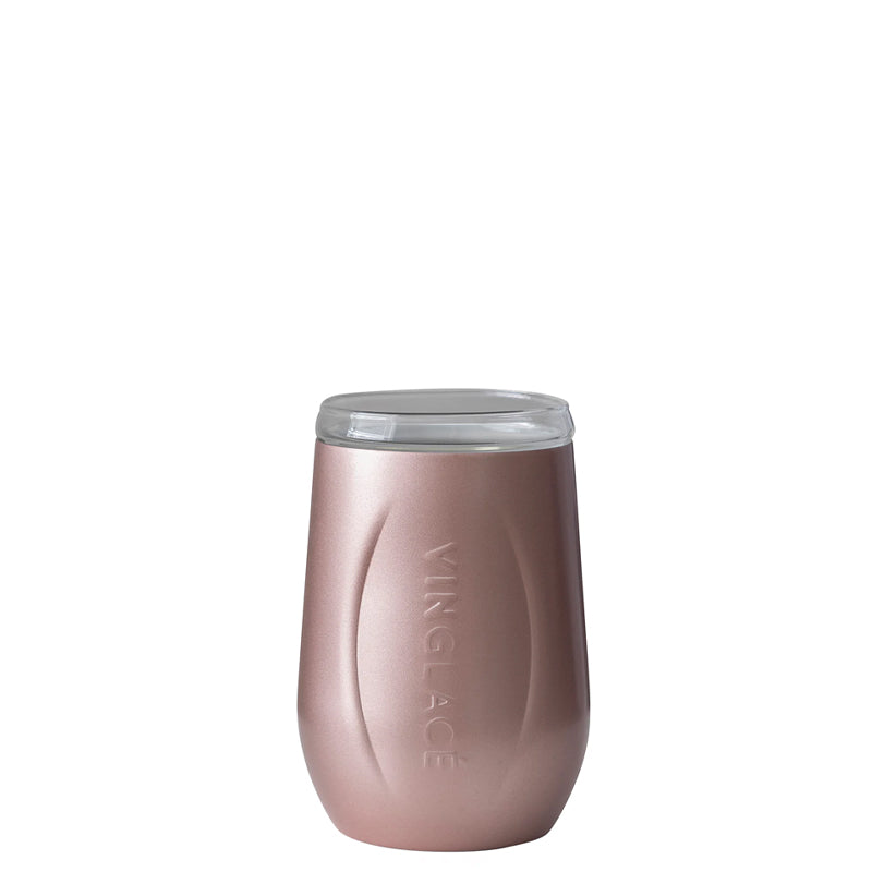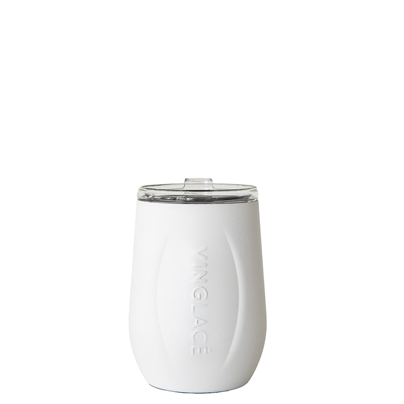 Vinglacé Wine Tumblers are Stainless outside - Glass inside, so no more metallic taste or smell. Now you can keep your wine chilled without sacrificing taste. The glass insert is dishwasher safe and comes with a sip through lid.