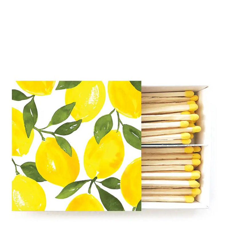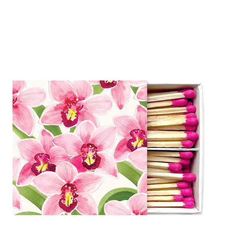 45 navy tipped matches in a water-color paint printed box with a black striker.