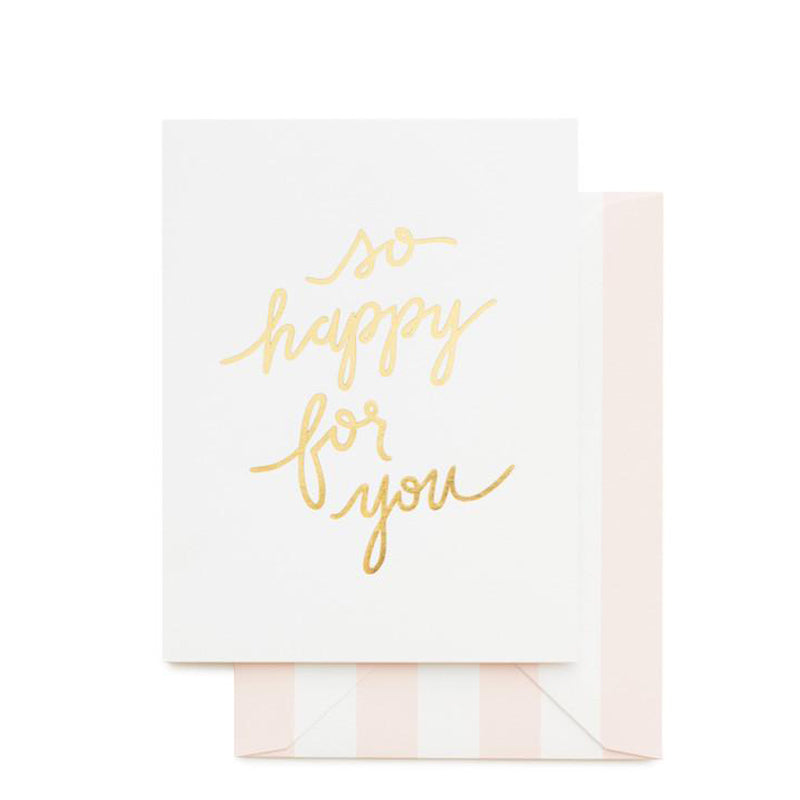 So Happy For You card is letterpress printed by hand on antique machinery.