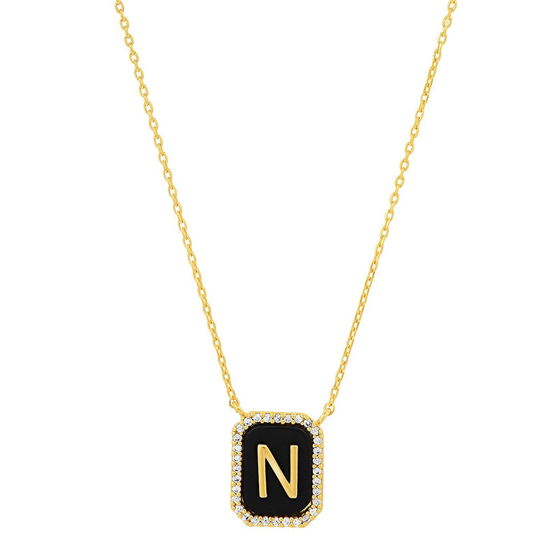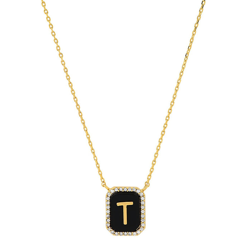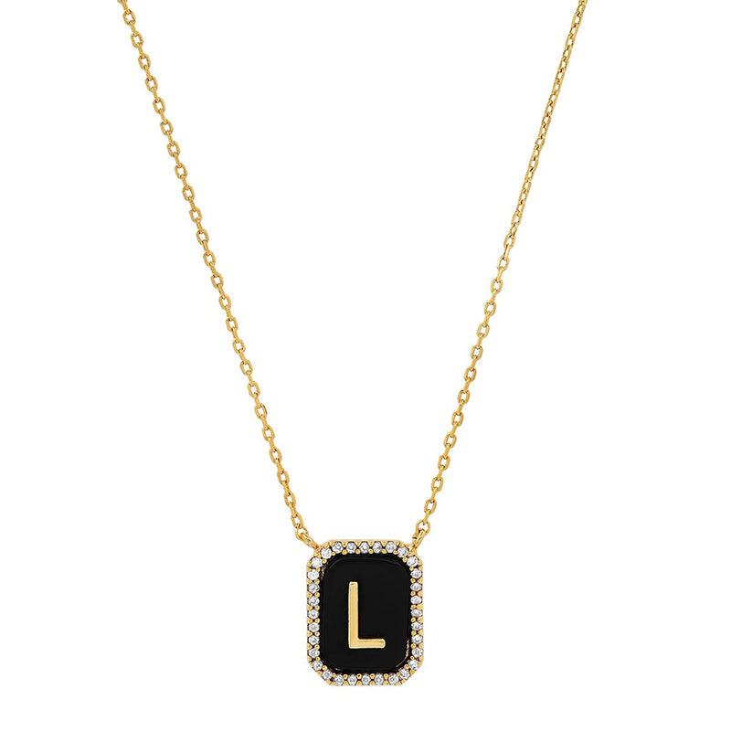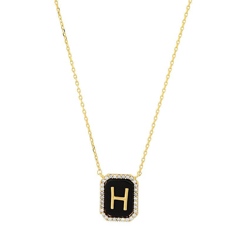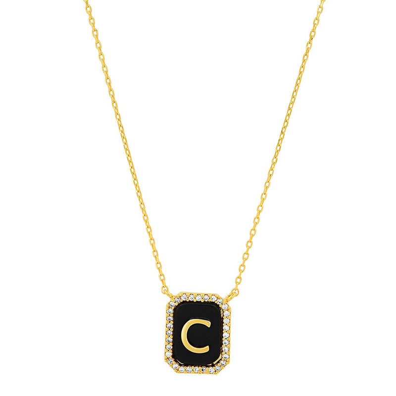 Your favorite initial, on a chain, set in onyx, accented with gorgeous cubic zirconias. Elegant, enticing, and borderline imperial, this piece will give you a sophistication that a hundred years ago could only be bought if you were a mob boss's side-piece.