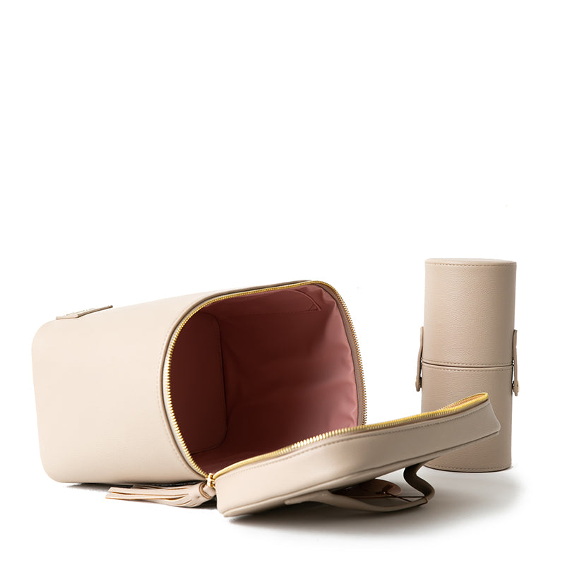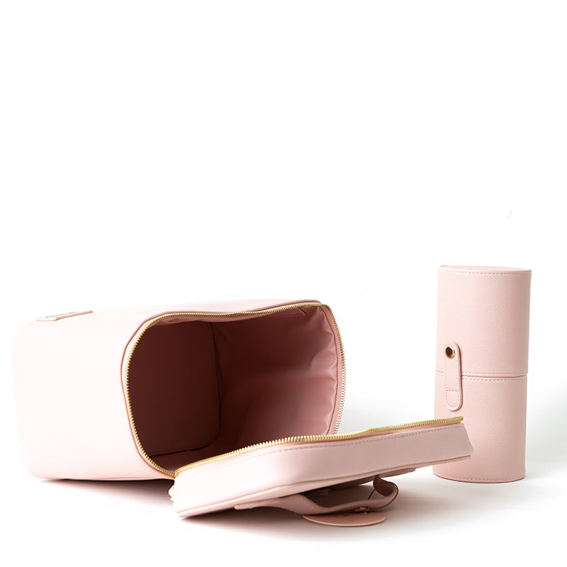 Your travel game just changed. This bag has a place for everything. From its one of a kind brush holder (comes included) to its amazing functionality this bag will not disappoint. Compartments for foundations, mascaras, eyebrow pencils and everything in between. This beauty fits the biggest of full size pallets. Zipper compartment up top to hold jewelry or other small items. The quality is unmatched and this bag is sure to be a show stopper.