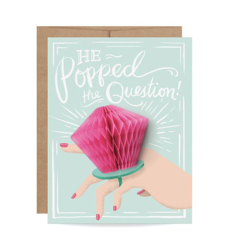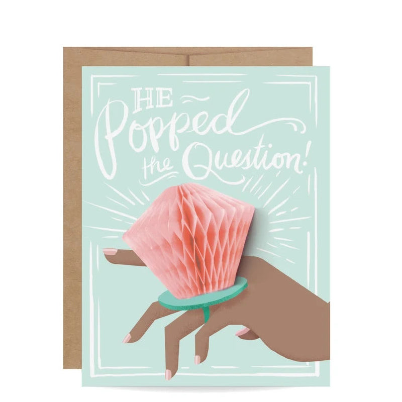He popped the question! Congratulate her in the sweetest way with this adorable ring pop card. Pop-up cards ship flat, with no extra postage required! Simply peel back the honeycomb and press down to adhere. This card is available in two skin tones. See separate listing for darker skin tone.
