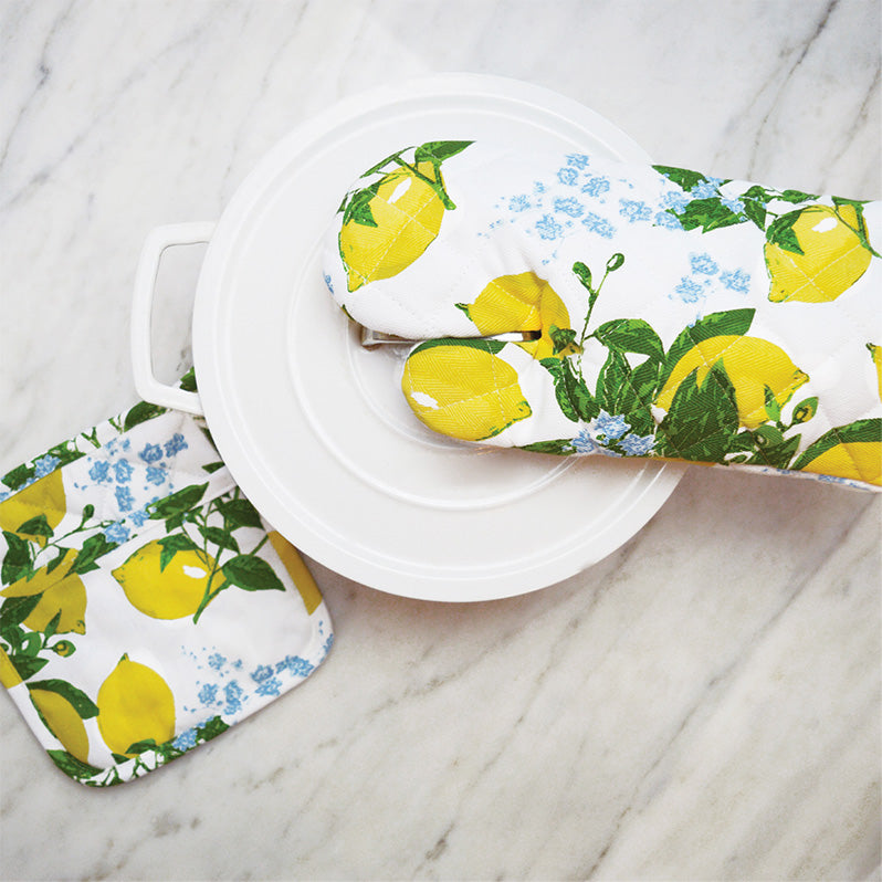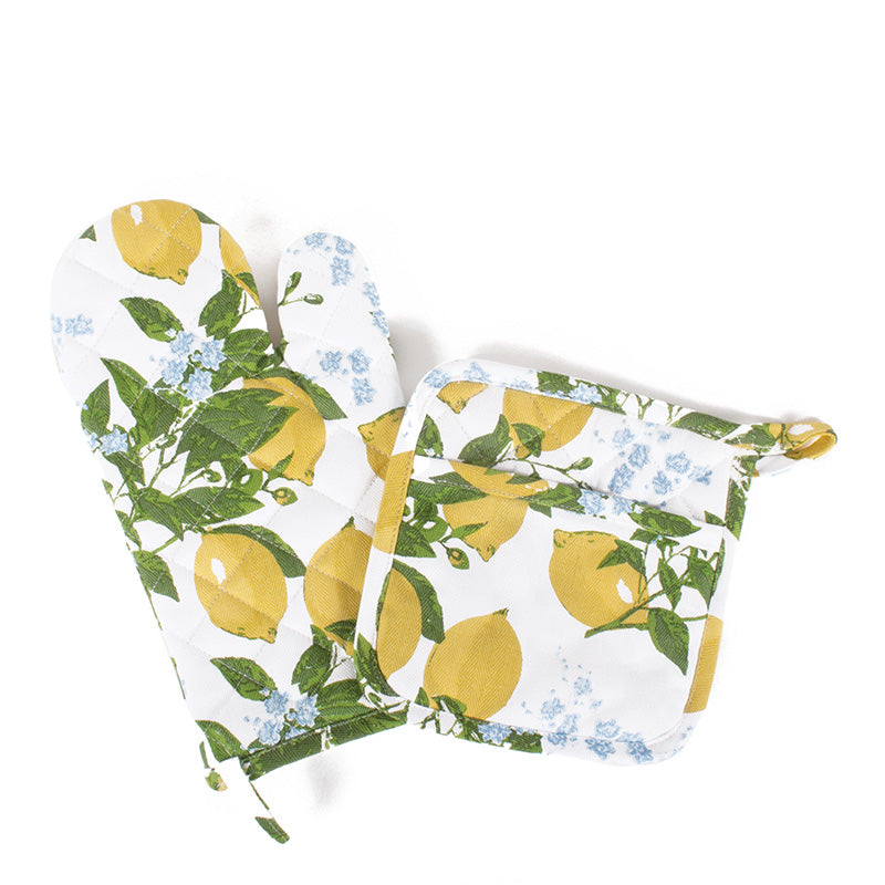 Get ready to feel stylish while cooking with this set and its printed design – perfect for adding a flair of sophisticated charm to any kitchen. Plus, each mitt and potholder also come complete with a hanging loop for easy storage when not in use!