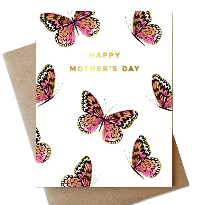 Inspire a feeling of elegance and sophistication with this limited edition Pink Butterfly Mother's Day Card. Crafted with beautiful digital print and luxe gold foil, encased in a brown craft envelope, each card offers an exquisite addition to any Mother's Day gift. An elegant blank interior provides the perfect canvas for a heartfelt handwritten message.