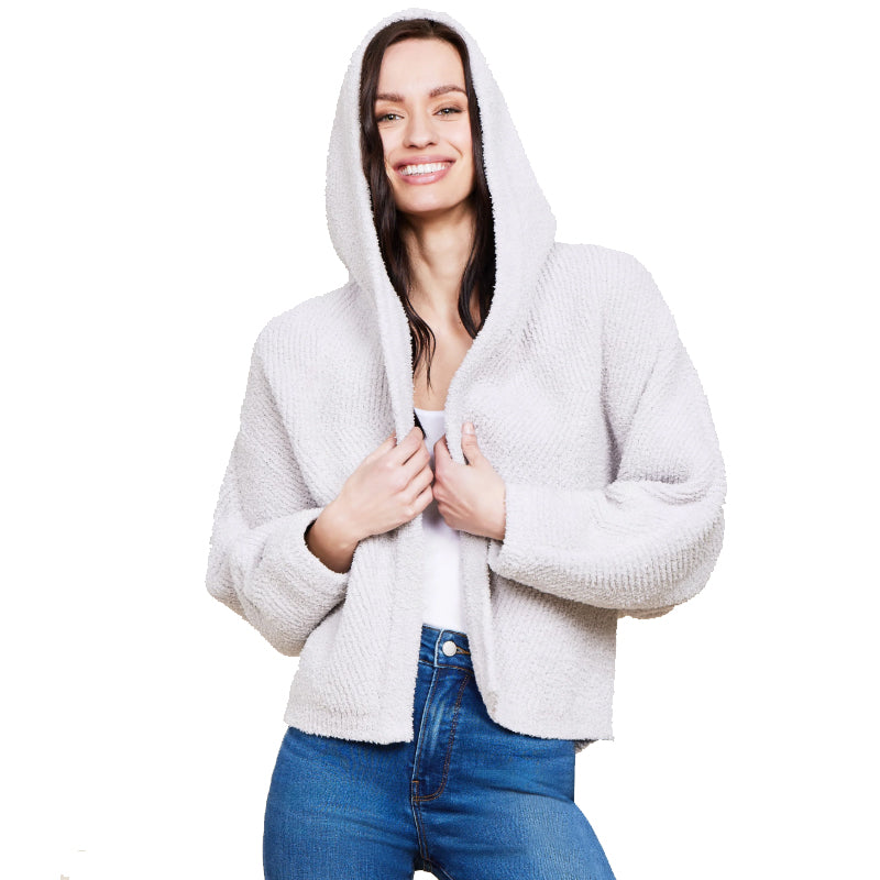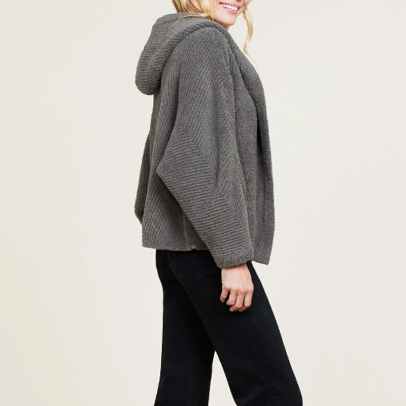 This Chevron Rib Cardigan provides both warmth and style. The open front and hood offer versatility and the length hits just at the right spot for a flattering look. The dolman sleeves and generous fit provide comfort while the chevron stitch adds a touch of elegance.
