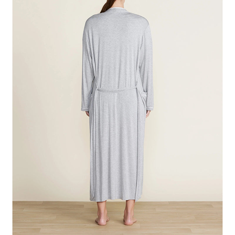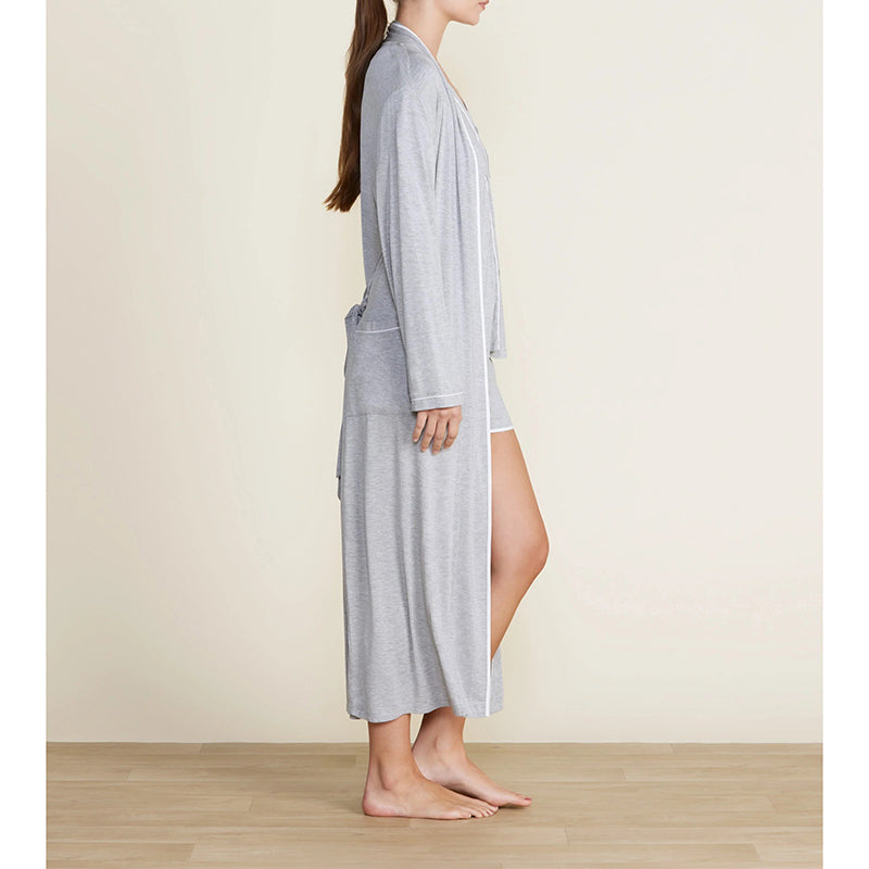 From the Barefoot Dreams Malibu Collection®, this midi length robe features a relaxed fit with long sleeves, patch pockets, and a tie at the waist. The soft jersey fabric ensures extra softness for an indulgent experience. Perfect after a long day or as part of a spa-like getaway. Pairs beautifully with the Malibu Collection® Soft Jersey Piped Lounge Set.