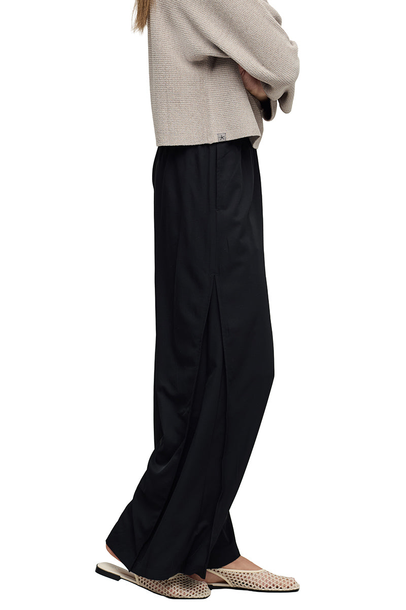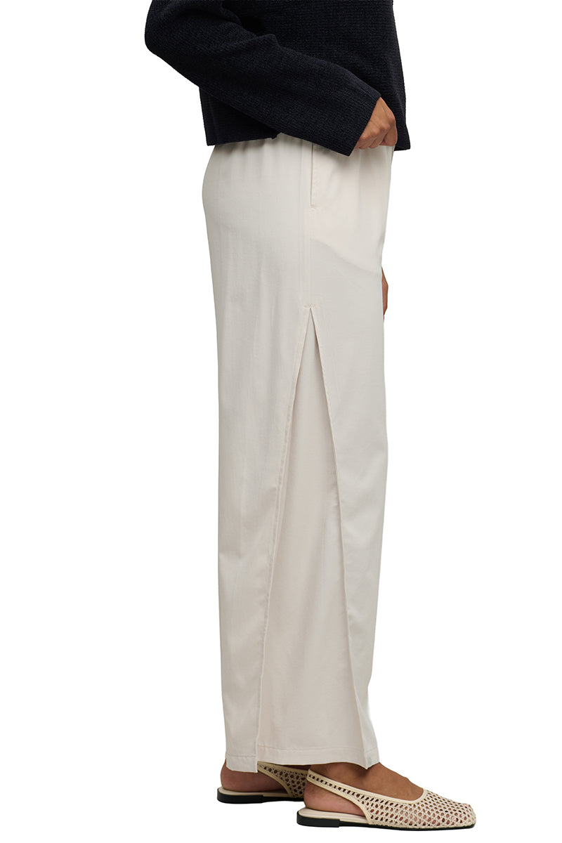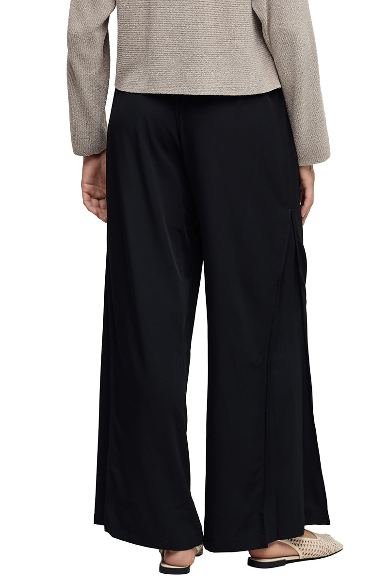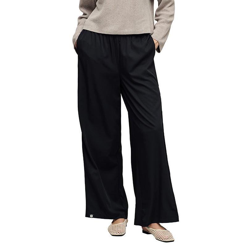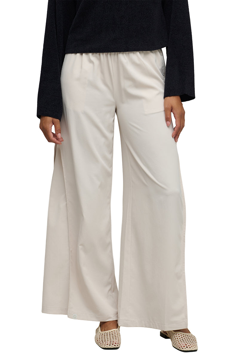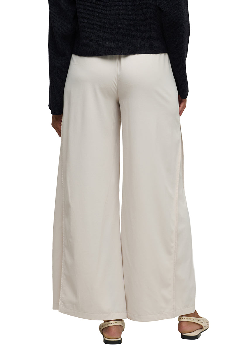 Sleek meets statement in our Matte Sateen Palazzo Pant, designed to bring effortless flow and elevated ease to your everyday wardrobe. Crafted in a soft, fluid matte sateen, this mid-rise, wide-leg pant features side darts at the legs to enhance volume and movement, creating a dramatic silhouette that feels as good as it looks. A relaxed fit with an elasticated waistband and adjustable drawcord offers a customizable, comfortable feel, while side seam pockets add practicality to the polished design. Whether dressed up or down, this pant delivers modern sophistication with laid-back appeal. Imported.