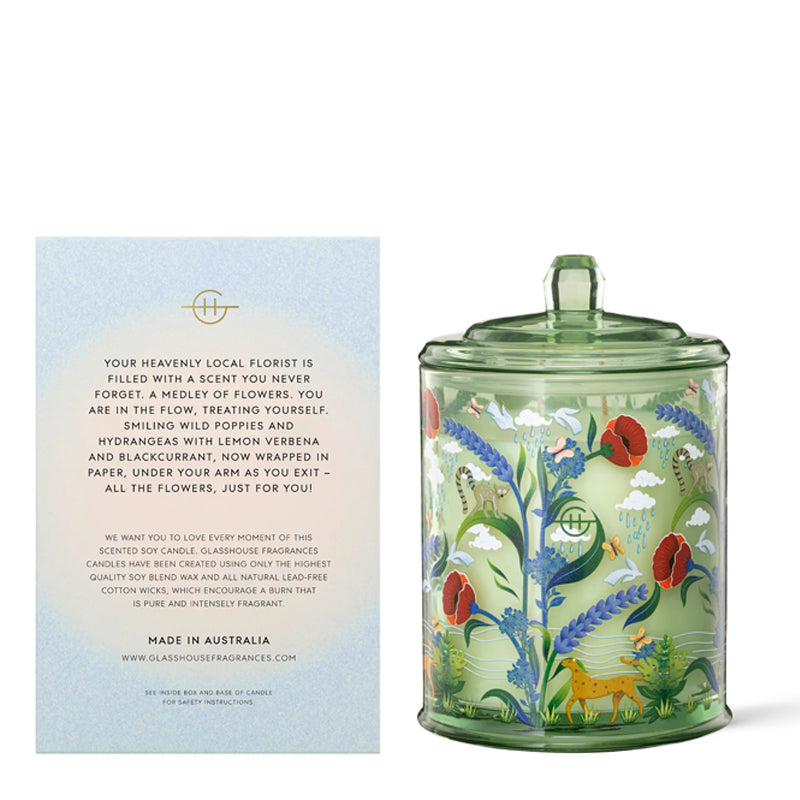 Your heavenly local florist is filled with a scent you never forget. A medley of flowers. You are in the flow, treating yourself. Smiling Wild Poppies and Hydrangeas with Lemon Verbena and Blackcurrant, now wrapped in paper, under your arm as you exit — all the flowers!