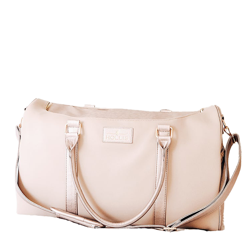 Travel in Style! The most glam duffle you have ever seen. A beautiful nude paired with the classic Hollis rose gold leopard. The end result is AMAZING!