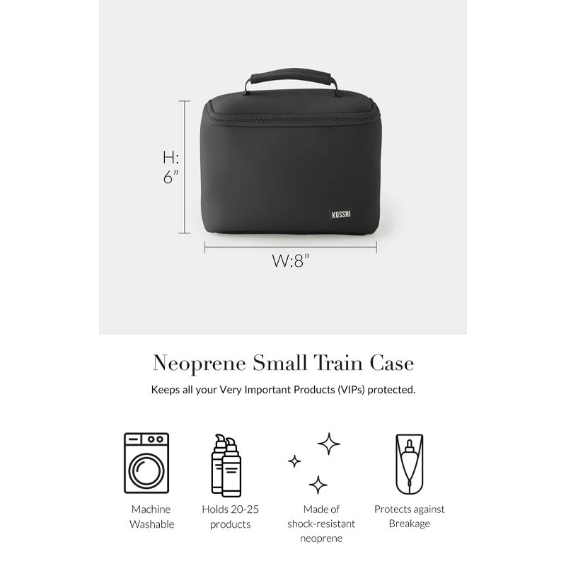 This machine washable train case fits your makeup and beauty needs. Crafted from premium-quality neoprene, these train cases offer a protective cushion for all of your beauty essentials. The soft and comfortable handle on top makes it easy to transport from home to the gym to your next adventure.