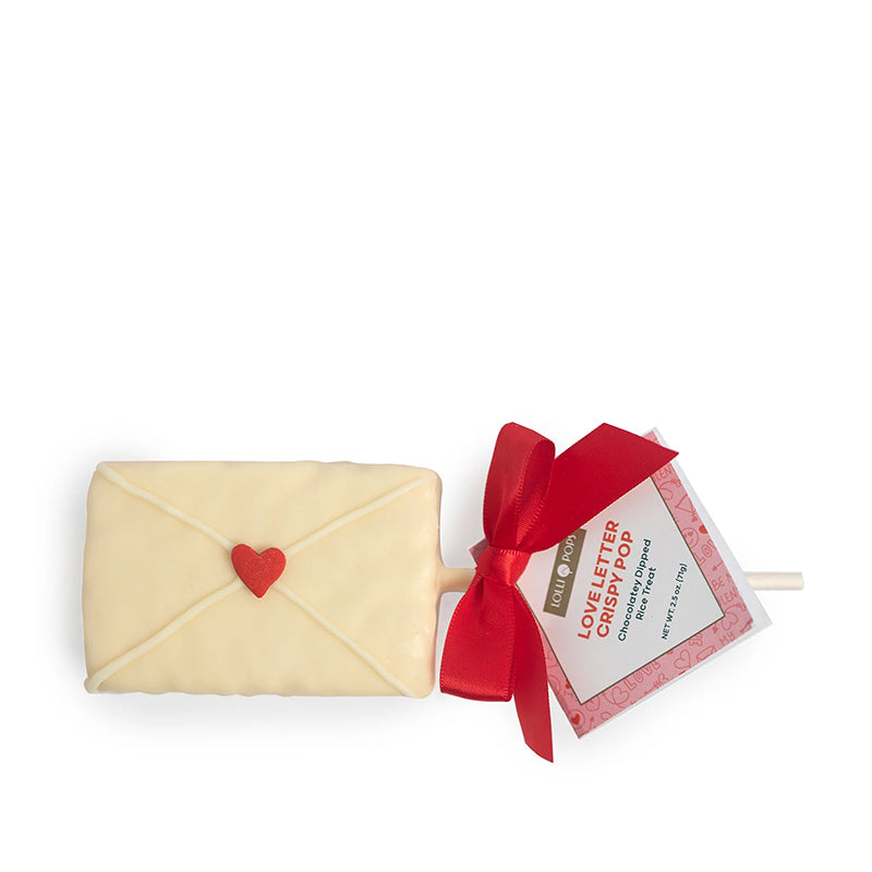 There's no tastier way to say "I Love You" than with a delicious marshmallow Crispy Pop. This chocolate-dipped rice crispy treat is the perfect, edible love letter.